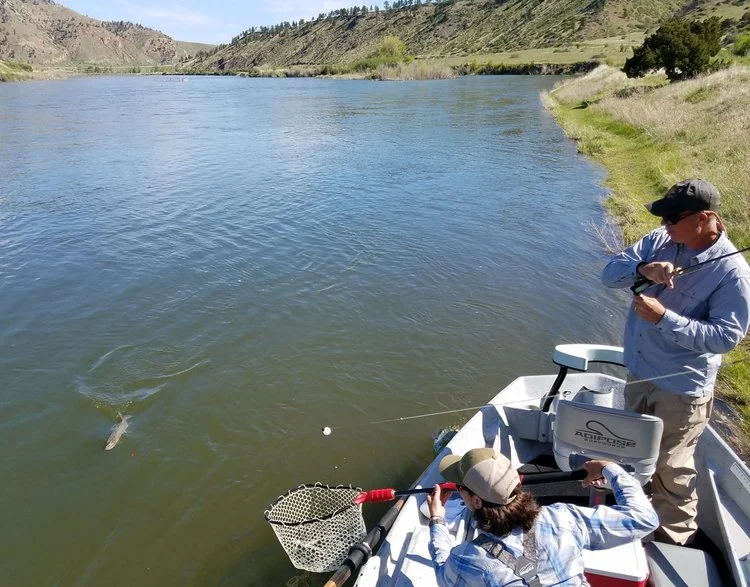 Missouri River Rainbow Trout comes to the net.